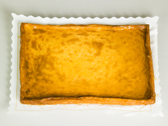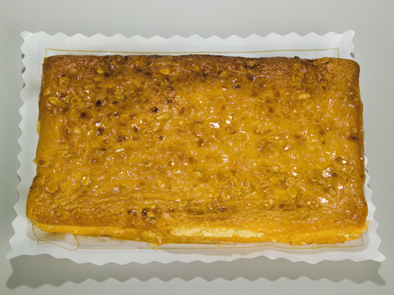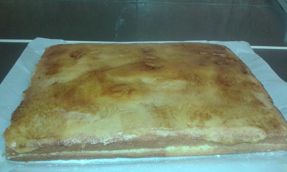 Bizcocho relleno de crema, con crema tostada en la parte superior