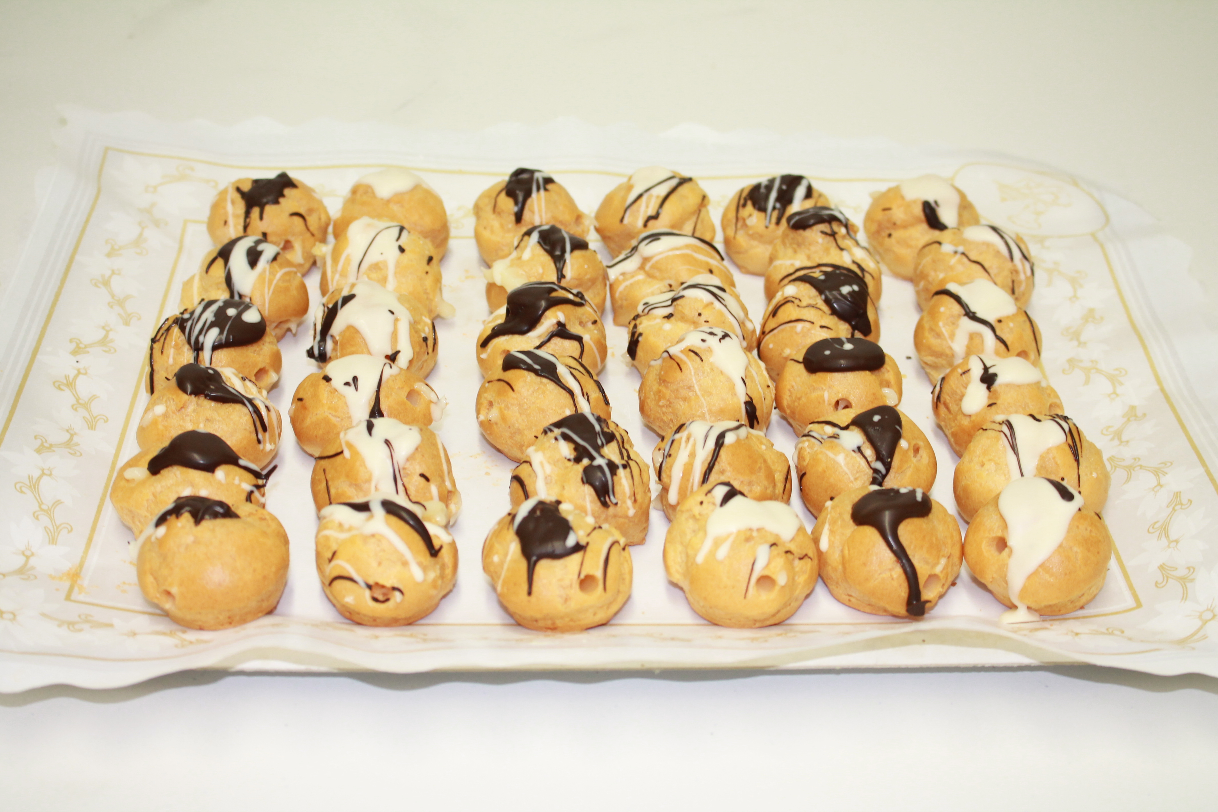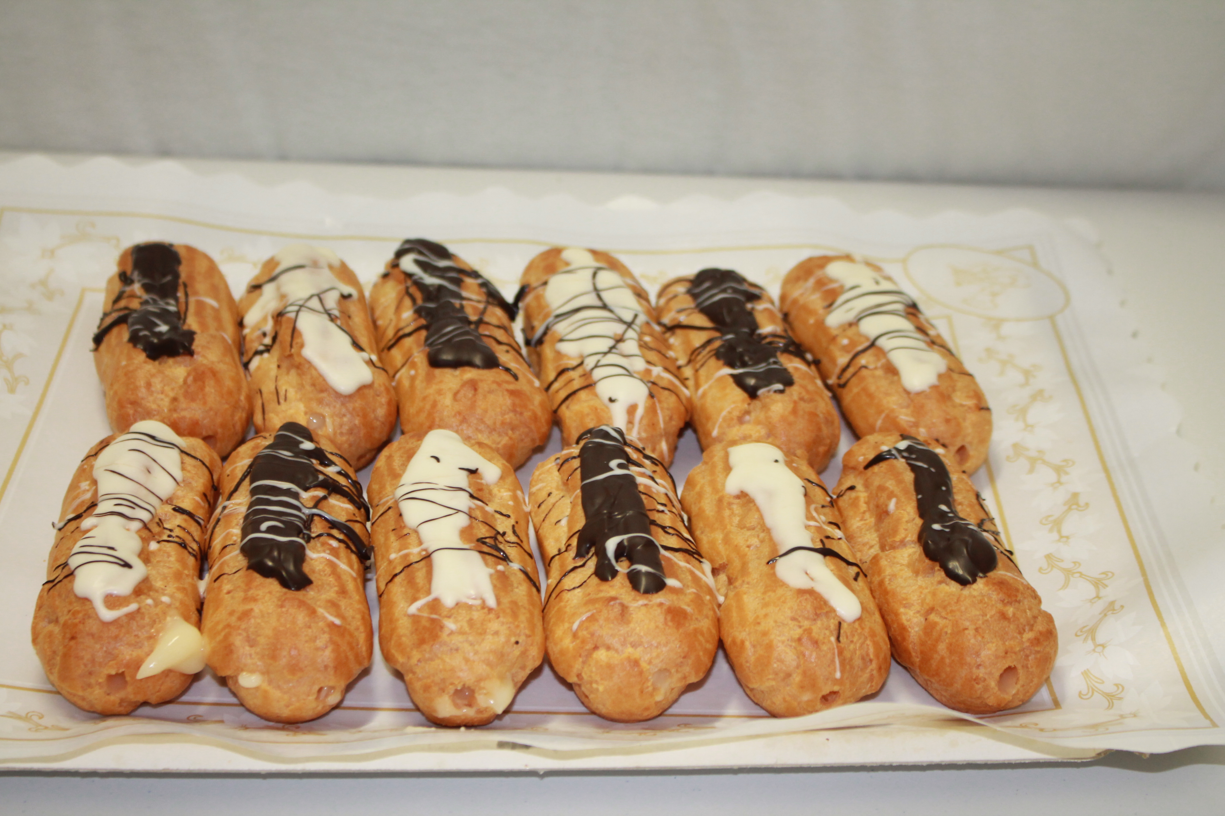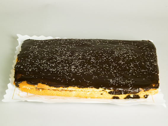 Bizcocho con relleno de crema o sin relleno, pintado de chocolate