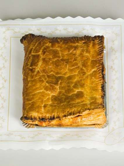 Empanada de hojaldre rellena de pisto, atún y huevo duro