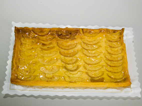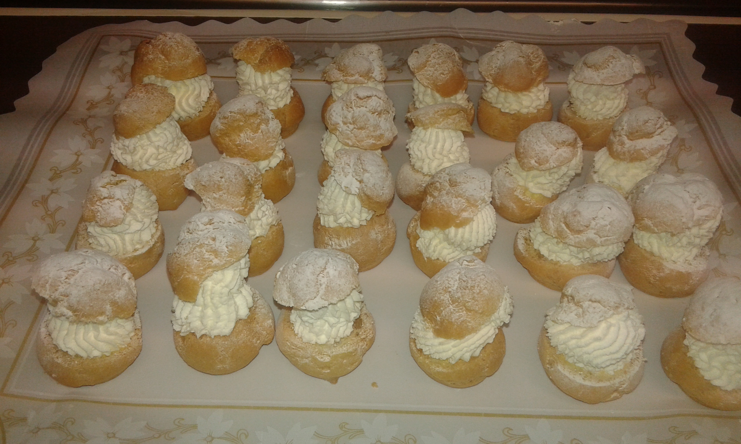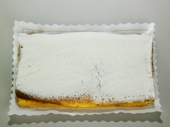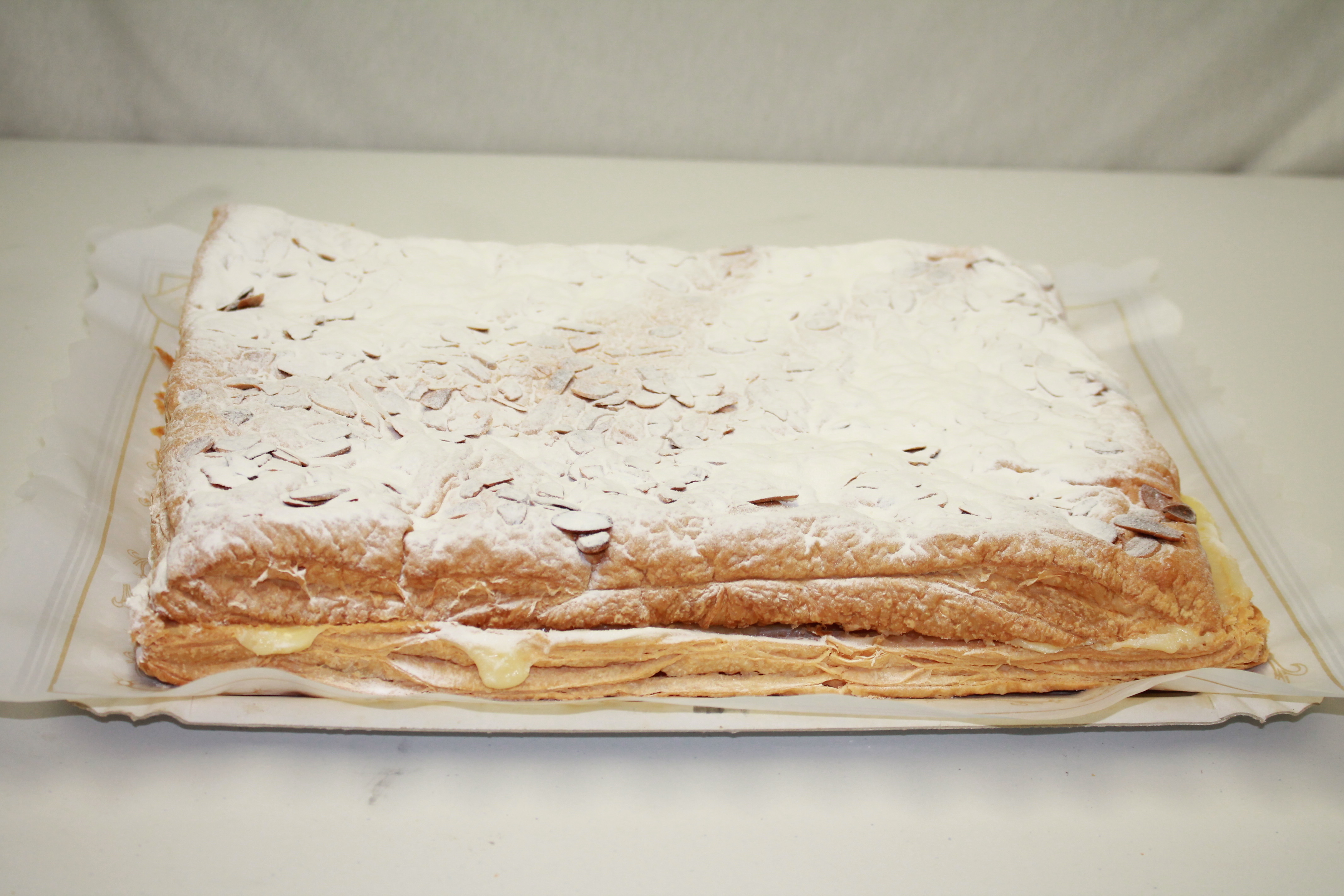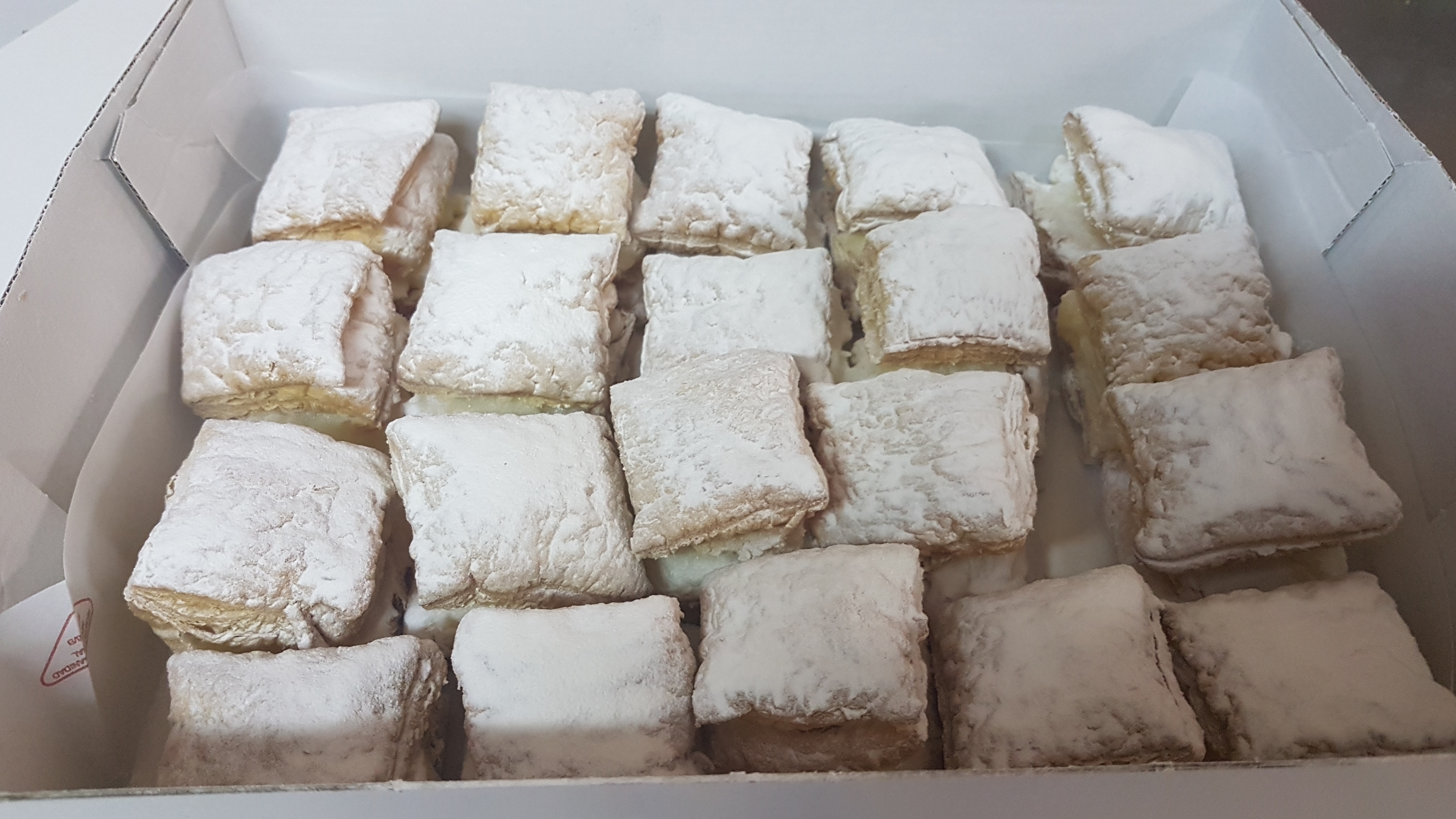 Hojaldre relleno de crema y almendra con azucar glass en la parte superior
