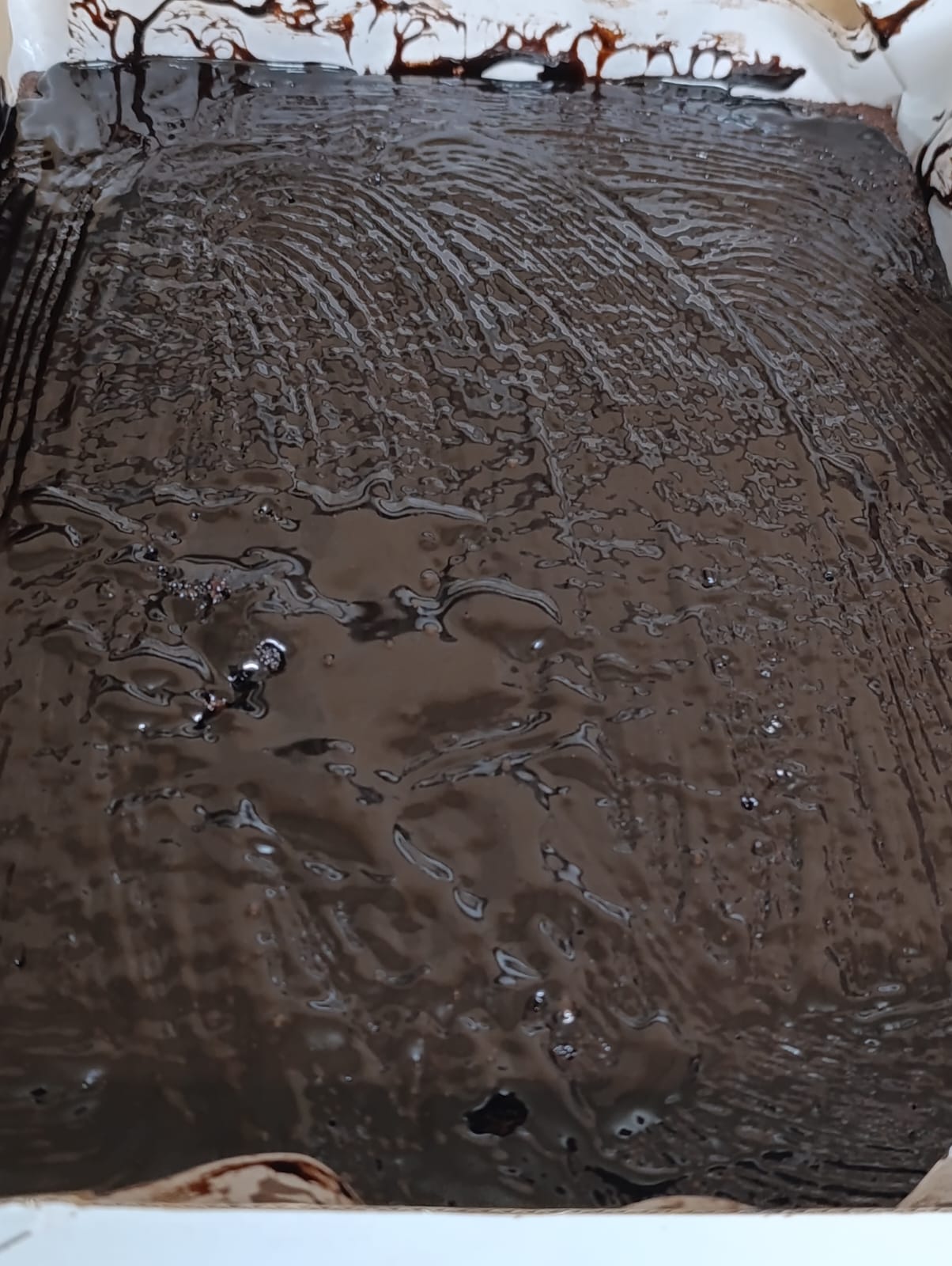 una capa de cholocate con lacasitos.